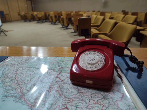 Detrás de un par de casitas enclavadas en la montaña y junto al río Neretva se construyó una de las mayores obras de ingeniería entre 1953 y 1979, veintiséis años tardó en ejecutarse esta ciudad subterránea que podía albergar a 350 personas. Unos túneles nos conducen a una puerta que puede soportar los kilotones de una explosión mayor que la de Hiroshima. Conforme nos vamos adentrando, nos encontramos recintos con habitaciones, sala de conferencia, cocina, sala de comunicaciones… Estas instalaciones tenían conductos de aire, electricidad y agua para que estas personas pudieran sobrevivir durante seis meses. Esta cueva antinuclear costó la friolera de 4,5 millones de dólares que si ahora es una fortuna, podemos imaginar en aquella época. La estética del lugar es totalmente setentera, y por un momento, Jose y yo nos miramos y comentamos: