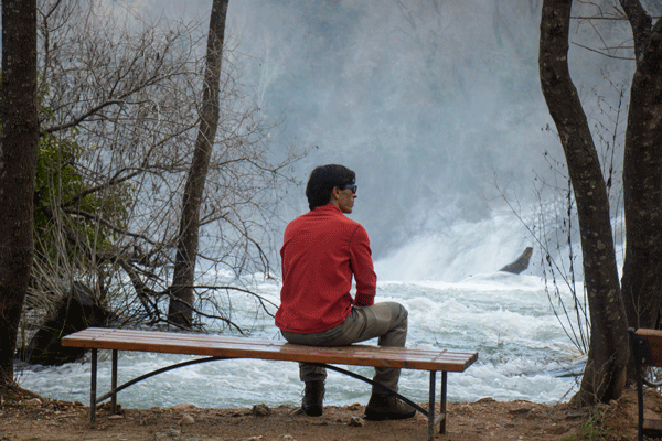 El lugar es una auténtica maravilla, si bien es cierto que está medio inundado por la crecida del río y no podemos cruzar a ciertas zonas, la fuerza del agua en caída libre es impactante. Los visitantes que hay son pocos, pero las mujeres ya portan el velo y los hombres son barbudos y ambos muy perfumados, los aromas permanecen durante metros de nuestro recorrido.