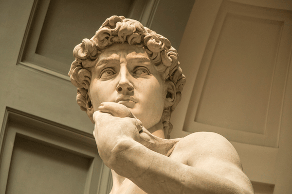 Desde que ponemos el pié en Florencia sentimos una sobredosis de arte viendo todo lo que nos rodea, sus edificios, esculturas, puentes, músicos en las calles… mi cámara de fotos está literalmente echando humo. Pero lo que nos deja verdaderamente maravillados es la visita a la Galería de la Academia, donde el imponente David de Miguel Angel, está expuesto. La habíamos visto en fotos, pero tener delante de nuestros ojos esta mole de piedra esculpida con tanta delicadeza y precisión, dando tanta fuerza, expresividad y belleza supera nuestras expectativas. Esta obra fue encargada por los responsables de la Opera del Duomo en 1501, diversos escultores intentaron trabajar esta gran masa de mármol, pero no lo consiguieron, y fue Miguel Ángel quien se enfrentó a este reto culminándolo con la grandeza que todos podemos ver y que en su día fue la sensación de la época.