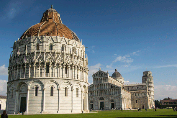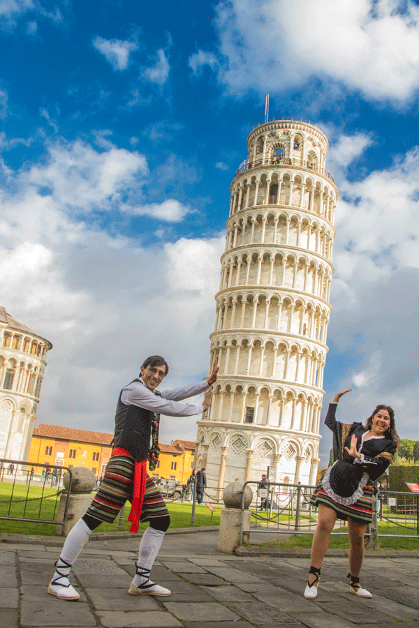 Optamos por poner a Pisa en la primera de la lista. Esta bella ciudad tan visitada por su torre inclinada, en su día fue una auténtica odisea, ya que un problema de cimientos hacía que se desviase una y otra vez de la que debía ser su posición. Tardó siglos en construirse, desde el IX hasta el XI, y en estos trescientos años, no hubo forma de que quedase derecha. Hubo momentos en la historia en los que se cerró por temor a su derrumbe, pero después del veredicto de muchos expertos, se decidió abrirla al público de nuevo. El conjunto arquitectónico de la catedral, basílica, torre y otros edificios bien merecen la pena una parada en esta ciudad, aunque los desorbitados precios para entrar en la “atracciones” son desorbitados, al menos para los que queremos viajar por muchossss meses. Todos los que pasamos por aquí, cientos, miles, millones acabamos haciendo todo tipo de posturas extrañas para tener la foto más cómica con la perspectiva de la torre inclinada más famosa del mundo, por suerte, nosotros hemos madrugado y hemos podido disfrutar de este escenario casi solos.