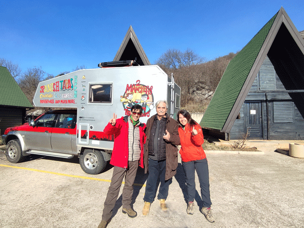 Ayer, cuando descendíamos de la “carretera” del monasterio, vimos a un lado, unas cabañas junto a un restaurante llamado Koliba, y tenían muy buena pinta, con lo que decidimos parar a preguntar el precio. Debemos darnos una ducha, entrar en calor, lavar algo de ropa y cargar todos los electrónicos, por lo que por el precio de temporada baja, nos dan una cabaña familiar con todo lo que ahora son lujos para nosotros: agua caliente, calefacción, enchufes y wifi… vamos, los que son los básicos en la civilización. Parece que estemos en el Hilton jajaja.