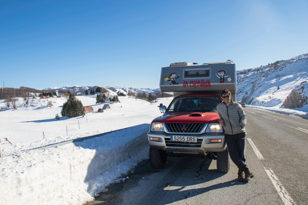 El paisaje es extraordinario y cada cinco minutos hago a Jose que pare para echar fotos, para juguetear con la nieve, mencionar que nos ha llevado tres horas hacer ciento cincuenta kilómetros, y no todo hay que achacarlo a las curvas.
