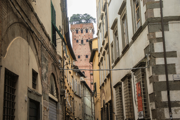 A pesar de que hay que deshacer camino, no podemos dejar esta zona sin visitar Lucca, una ciudad medieval que nos deja asombrados con sus torreones, su magnífica catedral, la basílica de San Frediano donde hemos podido ver la momia de Santa Zita, la patrona de la ciudad y sus calles animadas por el bullicio tanto de los locales como de los visitantes que por aquí pasamos. Al contrario que Pisa, donde básicamente todos somos turistas, aquí se respira un ambiente más local que nos gusta, ya que no es tan parque de atracciones como la ciudad vecina. Terminamos el día encaramados en una de sus torres, la Guinigi que nos ofrece una magnifica vista de toda la ciudad al atardecer.