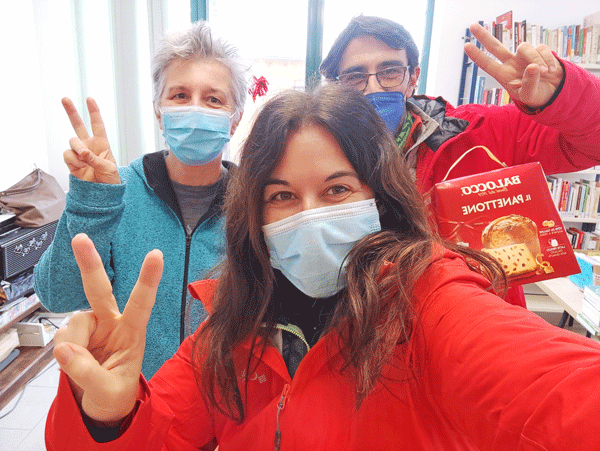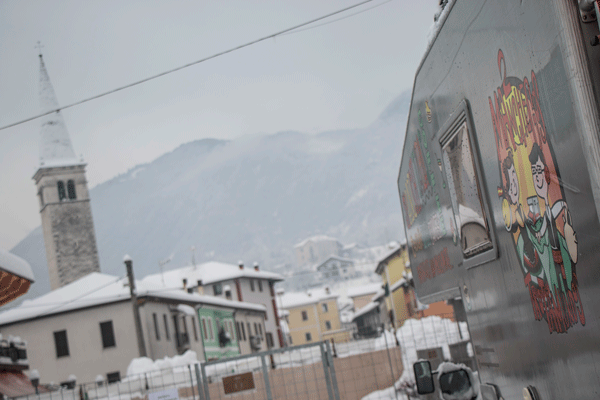 El pueblo es pequeño y las posibilidades pocas, por lo que decidimos aparcar enfrente de la biblioteca, que sin duda, será nuestro segundo refugio por unos días, y donde conocemos Piera, la encargada del lugar y majísima. Después de tres días de temporal y de algún intento de paseo fallido, porque hay más de un metro de nieve y eso lo complica, decidimos dejar Arsié. Durante nuestra estancia aquí, hemos sido como un vecino más del lugar, charlando con la gente, nos ha prestado una palas para quitar la nieve, y hasta Piera nos ha regalado un panetone, ¡que gente más maja!, da gusto quedarse atrapado en un lugar así.