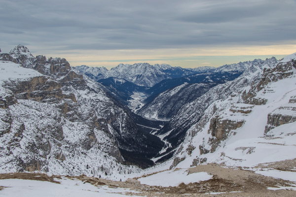 Y nuestro tercer destino, las tres cimas de Lavaredo, si cierto es que nos han advertido que los senderos para hacer caminatas nos son recomendables sin un guía, decidimos desde Dobbiaco adentrarnos en el valle, que por otra carretera serpenteante nos conduce a una vista maravillosa de la tres cimas en su cara norte. Allí nos afirman que el sendero está intransitable y que si conducimos unos kilómetros hasta Auronzo di Cadore podremos con buen calzado hacer el ascenso a la cara sur, pues allá que vamos. El paisaje es una maravilla, estamos rodeados de unos picos imponentes. Unos chicos que vienen de hacer sky de fondo, nos dicen que hay una parte del camino que está bien, la que ellos han recorrido, del resto no saben. Nos preparamos unos bocatas y ponemos rumbo a conquistar esas cimas. La primera hora de ascenso, es aceptable, pero a partir de un punto, el supuesto sendero, comienza a estrecharse y cada vez nos hundimos más, vamos que esto parece misión imposible. Una pareja que viene de regreso super bien equipados, nos ayudan a tomar la decisión de dar la vuelta.
