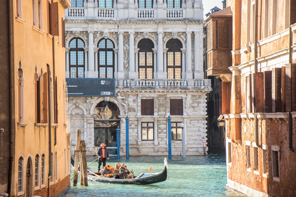 Venecia ha amanecido con un sol espectacular, acontecimiento que raramente sucede y la ciudad está radiante, con sus canales azul turquesa adornados por unos magníficos edificios, las góndolas paseando a las parejitas de enamorados, los gondoleros en las esquinas de los canales charlando entre ellos y con unos cuantos turistas mirando a todos lugares y empapándose de la maravillosa arquitectura que nos sabemos por cuantas generaciones permanecerá, antes de que las aguas del Adriático la engullan. Lo cierto es que la marea está por las nubes y la marea ha inundado la Plaza de San Marcos. Hay unos puestos de botas de plásticos, pero nos cobran doce euros por cada una, con lo que decidimos a través de unas pasarelas que hay montadas llegar hasta la basílica y hacer una visita con la esperanza de que baje la marea. Y si esta joya de construcción románico –bizantina nos ha fascinado por fuera, su interior cubierto de mármoles orientales, esculturas de bronce y sus fascinantes mosaicos de oro, nos han encantado. Y bingo, a la salida, el Adriático, nos permite contemplar un maravilloso atardecer desde la plaza.